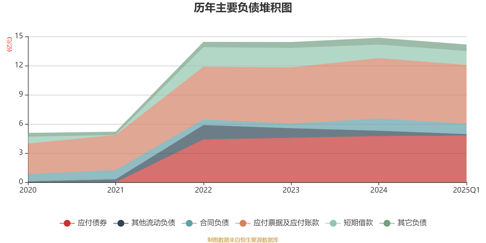 负债重大变化方面,截至2025年一季度末,公司其他流动负债较上年末减少71.18%,占公司总资产比重下降1.24个百分点;应付债券较上年末增加0.94%,占公司总资产比重上升0.58个百分点;合同负债较上年末减少14.88%,占公司总资产比重下降0.5个百分点;短期借款较上年末增加2.96%,占公司总资产比重上升0.26个百分点。