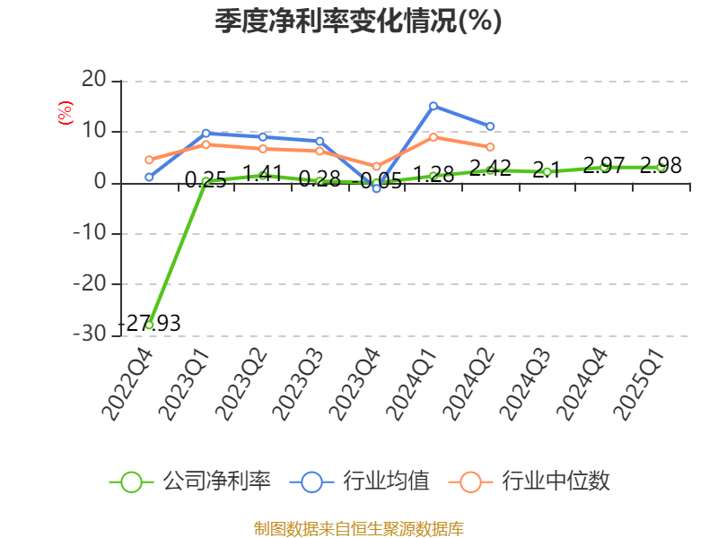 盈利能力方面, 2025年一季度公司加权平均净资产收益率为1.06%,同比上升0.72个百分点。公司2025年第一季度投入资本回报率为0.79%,较上年同期上升0.23个百分点。