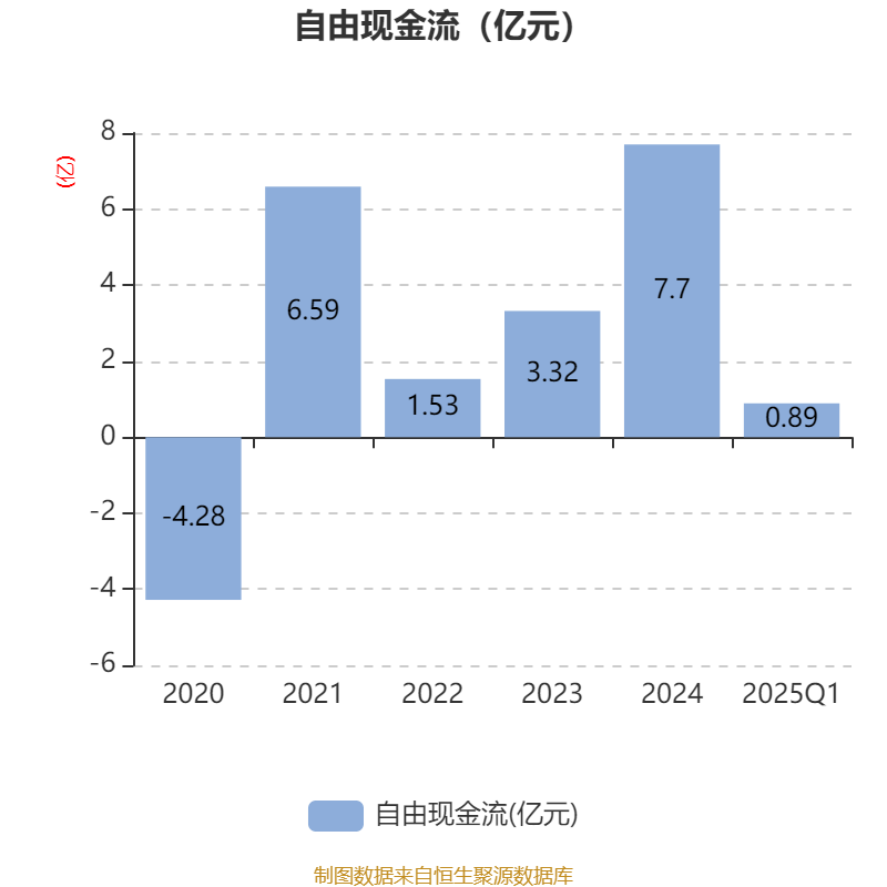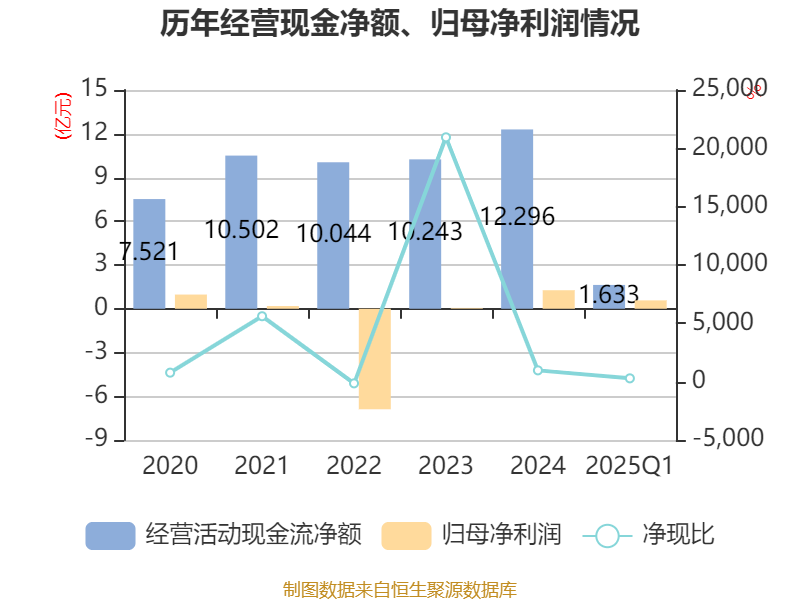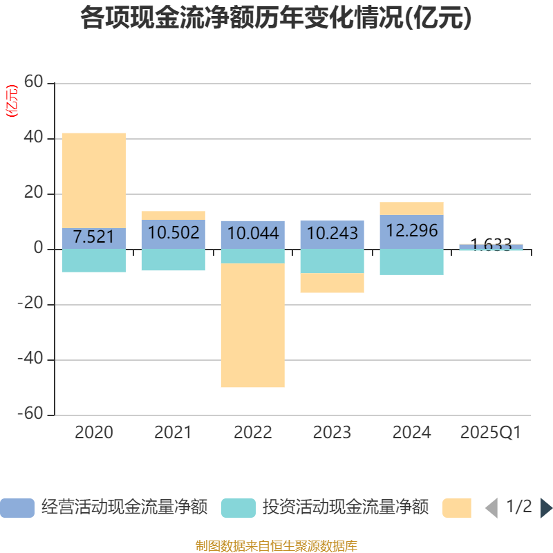 截至2025年一季度末,公司经营活动现金流净额为1.63亿元,同比下降71.2%;筹资活动现金流净额1296.38万元,同比增加5.02亿元;投资活动现金流净额-6057.9万元,上年同期为-1.93亿元。