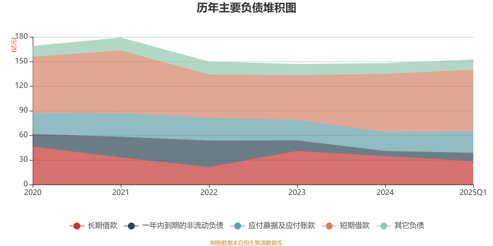 负债重大变化方面,截至2025年一季度末,公司长期借款较上年末减少17.36%,占公司总资产比重下降3.11个百分点;一年内到期的非流动负债较上年末增加58.84%,占公司总资产比重上升1.62个百分点;应付票据及应付账款较上年末增加14.09%,占公司总资产比重上升1.22个百分点;短期借款较上年末增加6.02%,占公司总资产比重上升1.16个百分点。