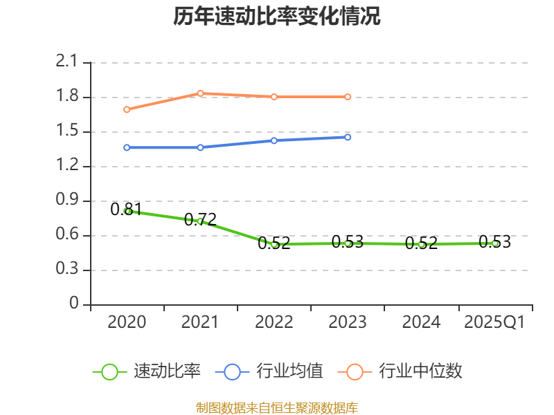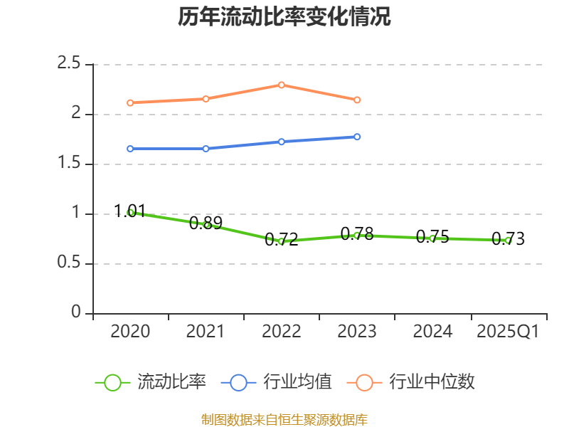2025年第一季度,公司流动比率为0.73,速动比率为0.53。