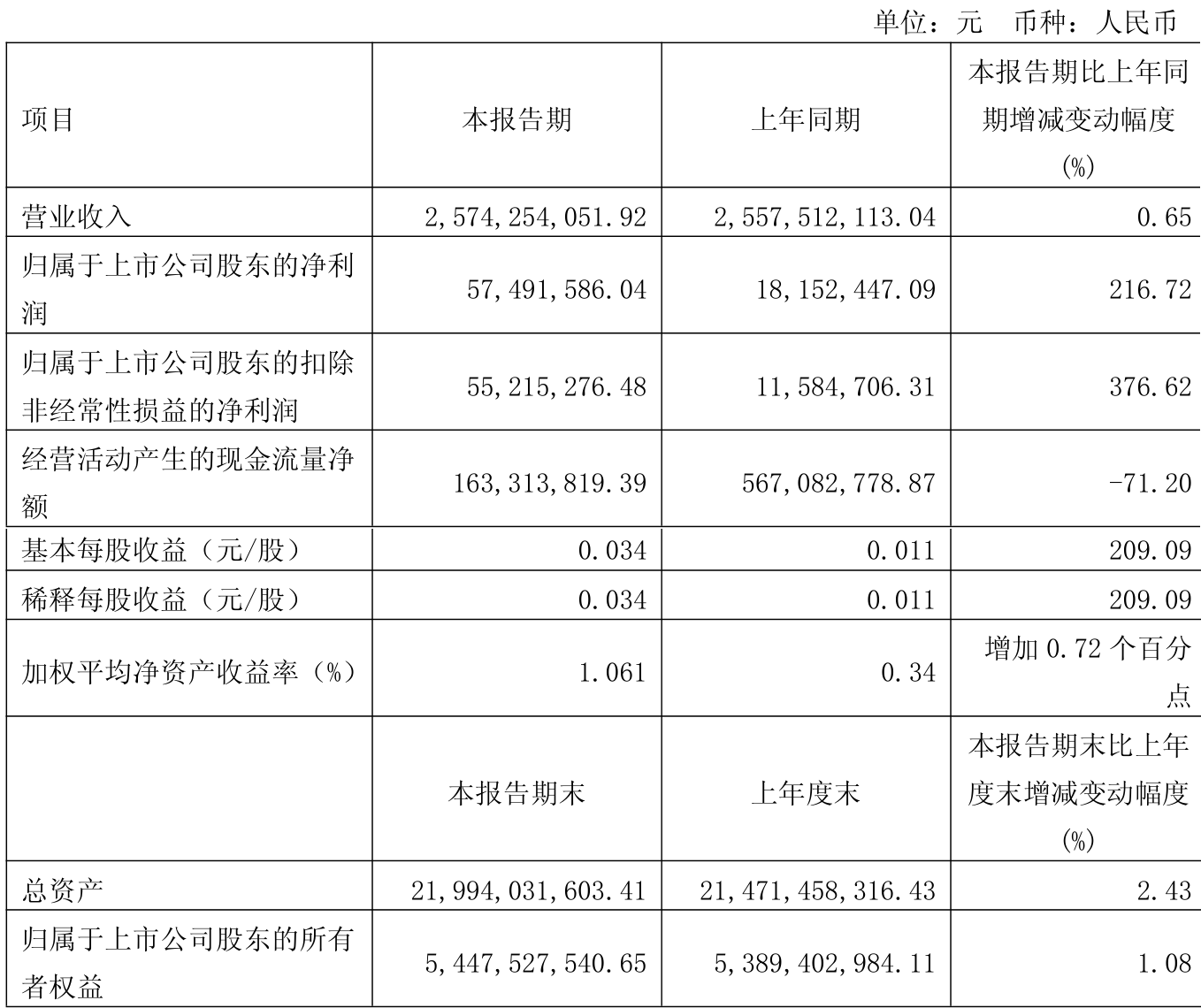 中证智能财讯华北制药(600812)4月24日披露2025年第一季度报告。公司实现营业总收入25.74亿元,同比增长0.65%;归母净利润5749.16万元,同比增长216.72%;扣非净利润5521.53万元,同比增长376.62%;经营活动产生的现金流量净额为1.63亿元,同比下降71.20%;报告期内,华北制药基本每股收益为0.034元,加权平均净资产收益率为1.06%。