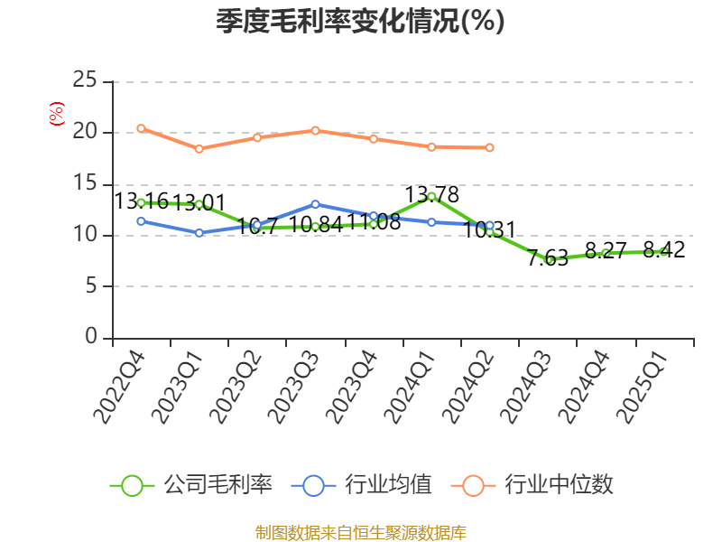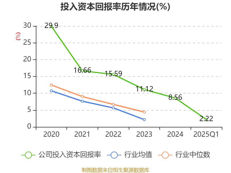 盈利能力方面, 2025年一季度公司加权平均净资产收益率为3.67%,同比上升0.8个百分点。公司2025年第一季度投入资本回报率为2.22%,较上年同期上升0.44个百分点。