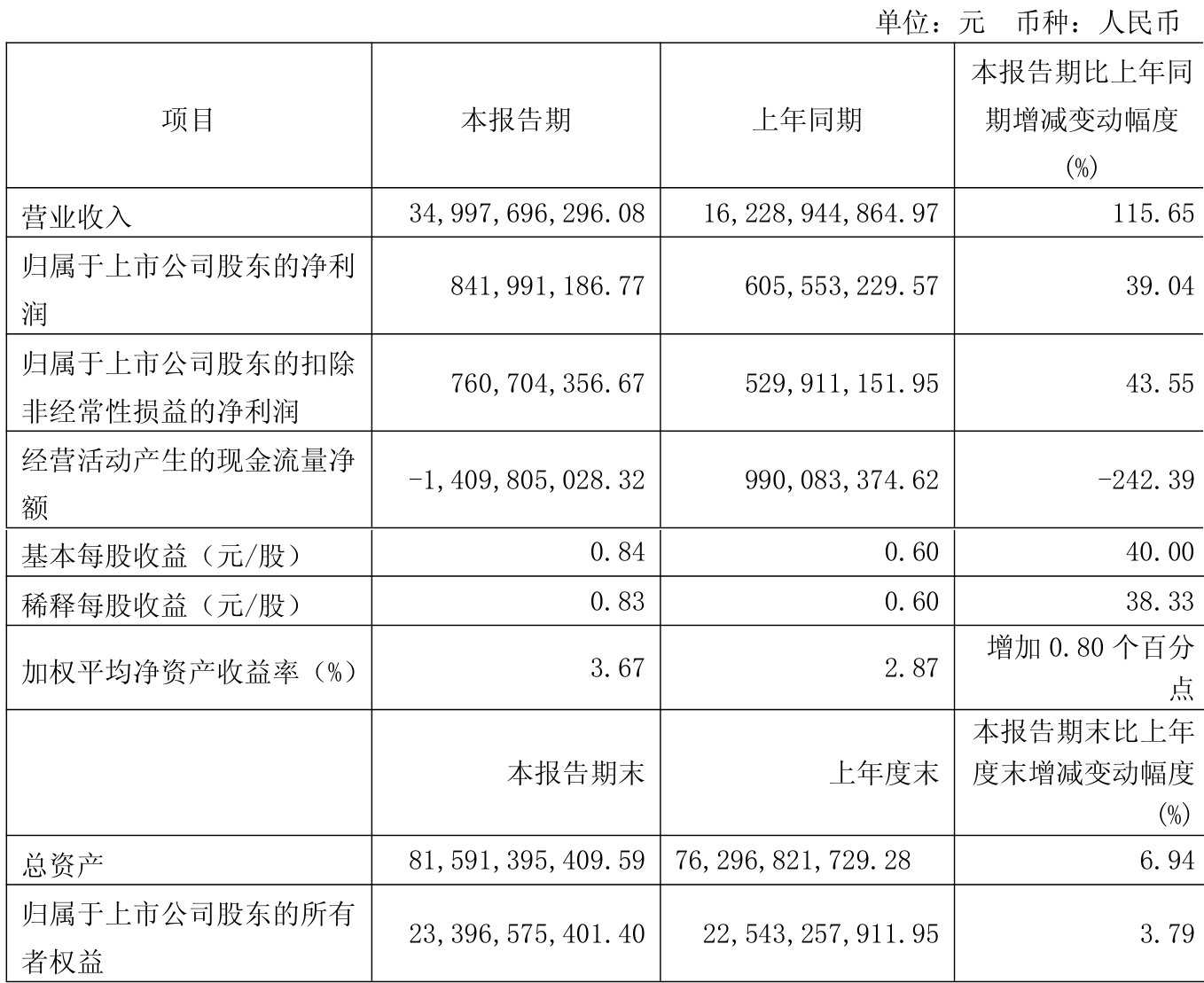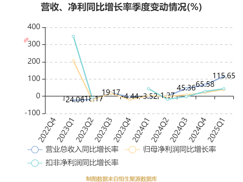 资产重大变化方面,截至2025年一季度末,公司在建工程合计较上年末减少53.79%,占公司总资产比重下降1.31个百分点;其他非流动资产较上年末增加55.41%,占公司总资产比重上升1.23个百分点;货币资金较上年末增加13.01%,占公司总资产比重上升1.02个百分点;固定资产较上年末增加14.82%,占公司总资产比重上升0.75个百分点。