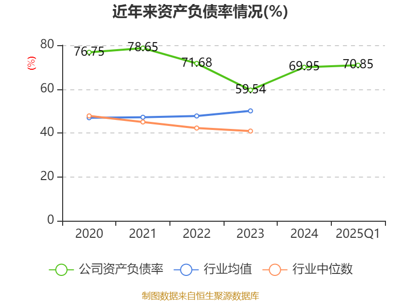 负债重大变化方面,截至2025年一季度末,公司应付票据及应付账款较上年末减少1%,占公司总资产比重下降3.63个百分点;短期借款较上年末增加39.65%,占公司总资产比重上升3.2个百分点;长期借款较上年末增加88.84%,占公司总资产比重上升2.48个百分点;一年内到期的非流动负债较上年末减少78.02%,占公司总资产比重下降1.39个百分点。