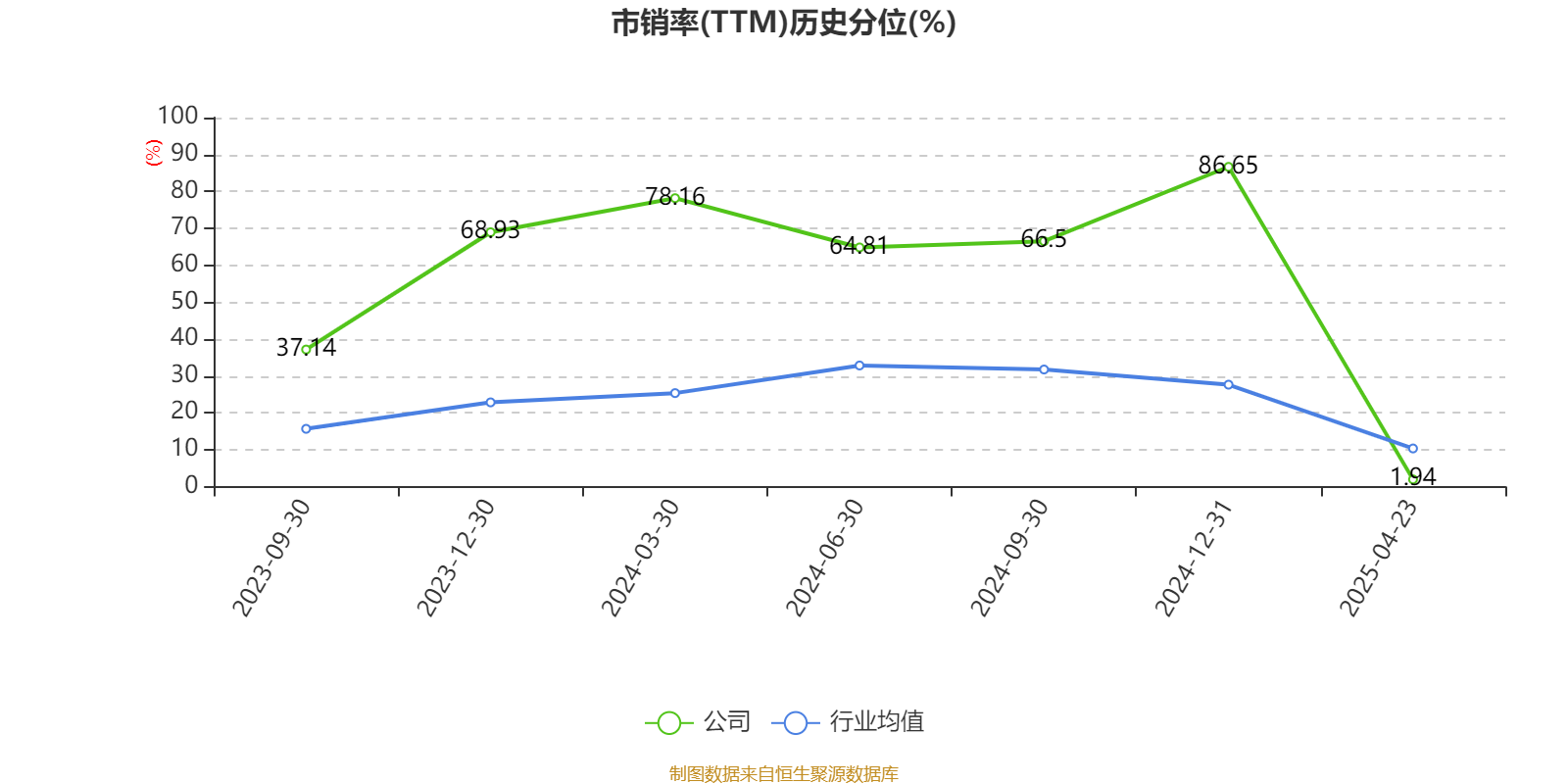 市盈率、市净率为负时,不显示当期分位数,会导致折线图中断。
