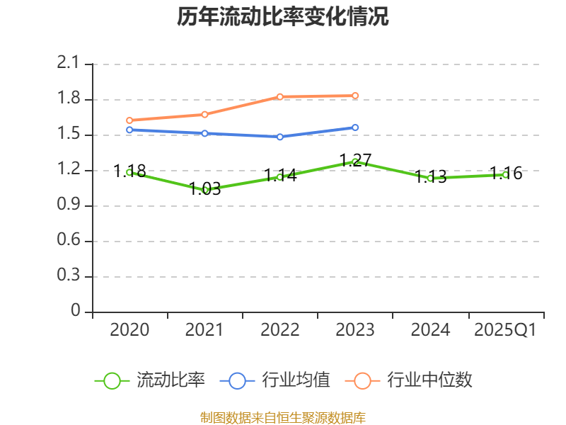 2025年第一季度,公司流动比率为1.16,速动比率为0.92。