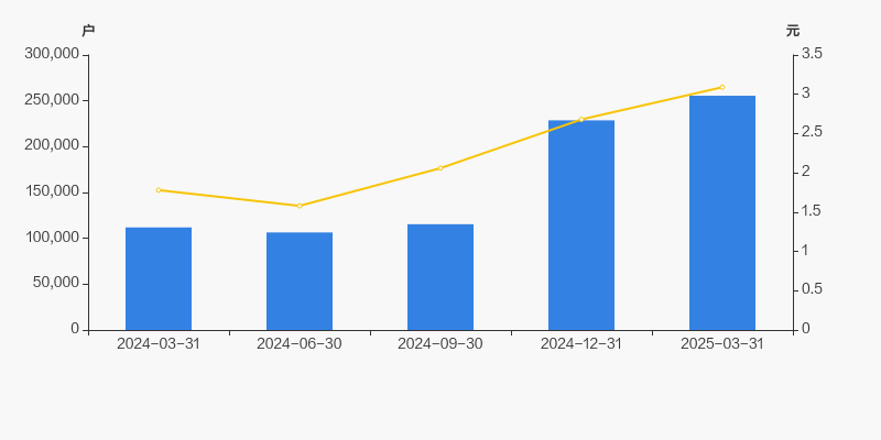 自2024年6月30日以来,公司股东户数连续3期上涨,截至目前增幅为140.18%。2024年6月30日至2025年3月31日区间股价上涨95.57%。