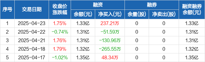 春兴精工融资融券信息显示,2025年4月23日融资净买入237.21万元;融资余额1.33亿元,较前一日增加1.82%