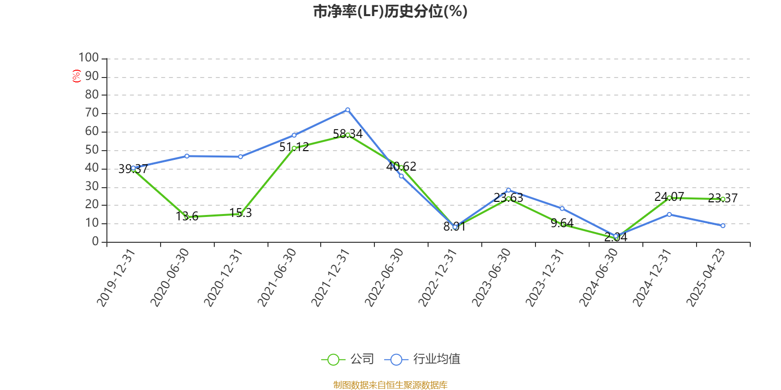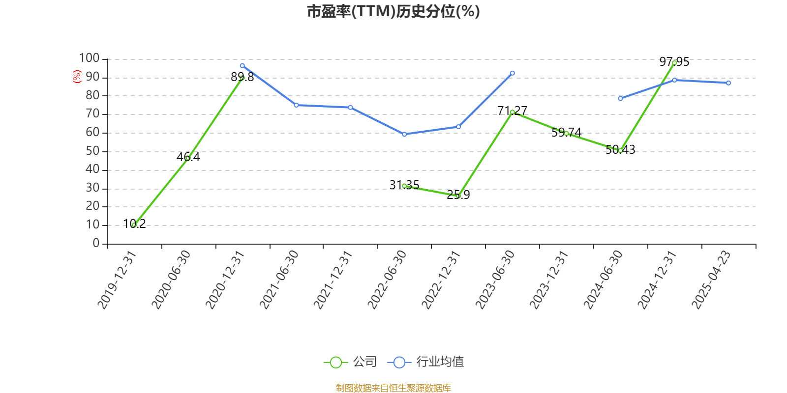 市盈率、市净率为负时,不显示当期分位数,会导致折线图中断。