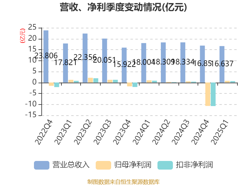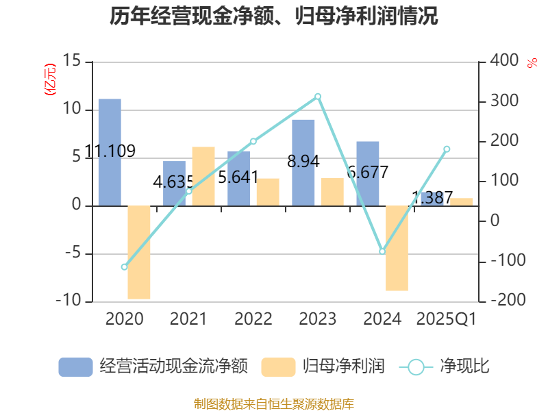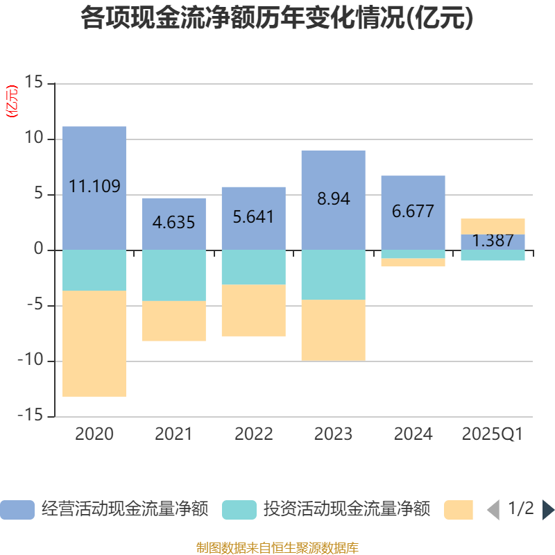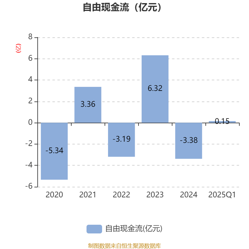截至2025年一季度末,公司经营活动现金流净额为1.39亿元,同比下降13.52%;筹资活动现金流净额1.43亿元,同比增加2.66亿元;投资活动现金流净额-9650.56万元,上年同期为-2981.72万元。