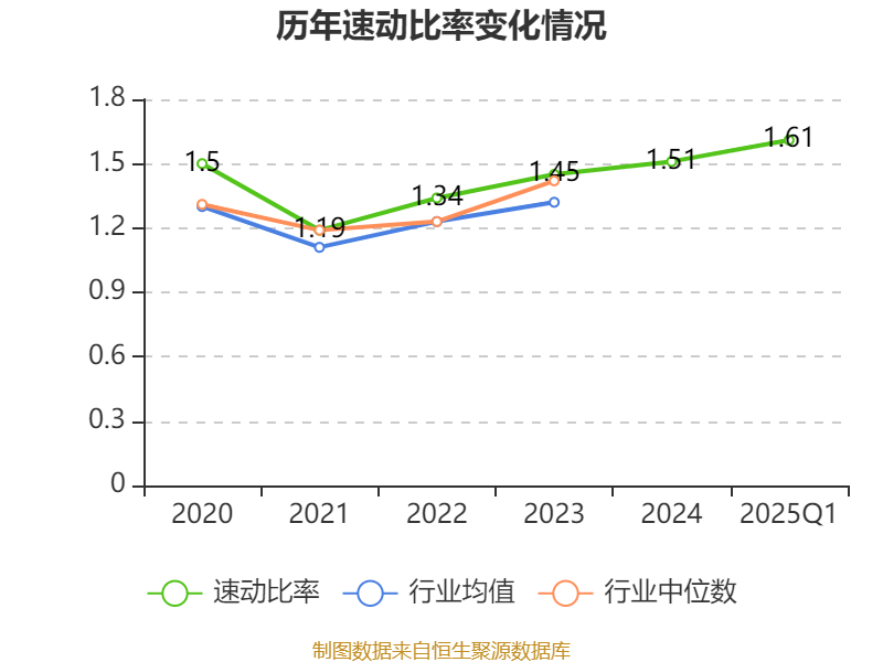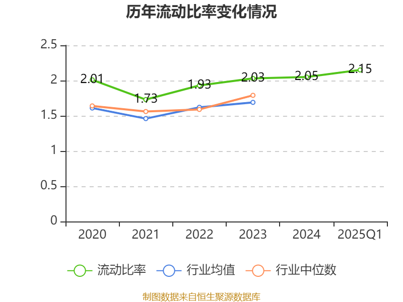 2025年第一季度,公司流动比率为2.15,速动比率为1.61。