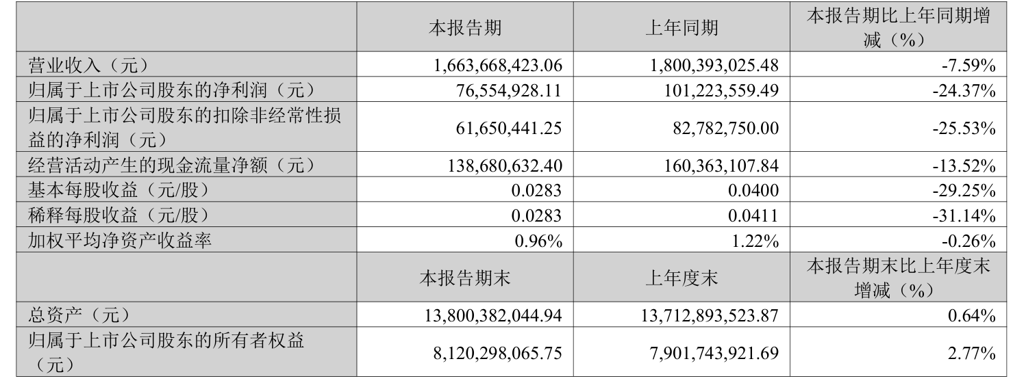 中证智能财讯利亚德(300296)4月24日披露2025年第一季度报告。公司实现营业总收入16.64亿元,同比下降7.59%;归母净利润7655.49万元,同比下降24.37%;扣非净利润6165.04万元,同比下降25.53%;经营活动产生的现金流量净额为1.39亿元,同比下降13.52%;报告期内,利亚德基本每股收益为0.0283元,加权平均净资产收益率为0.96%。