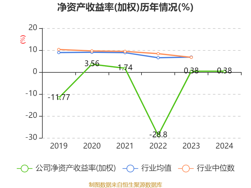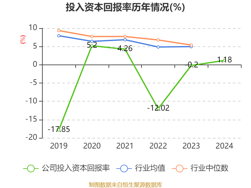 数据显示,2024年公司加权平均净资产收益率为0.38%,较上年同期持平。公司2024年投入资本回报率为1.18%,较上年同期上升1.38个百分点。
