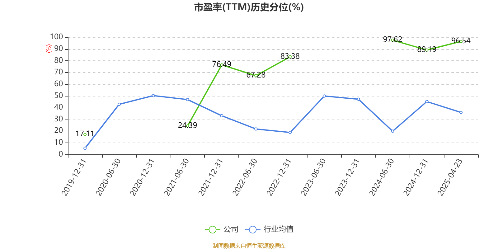 市盈率、市净率为负时,不显示当期分位数,会导致折线图中断。