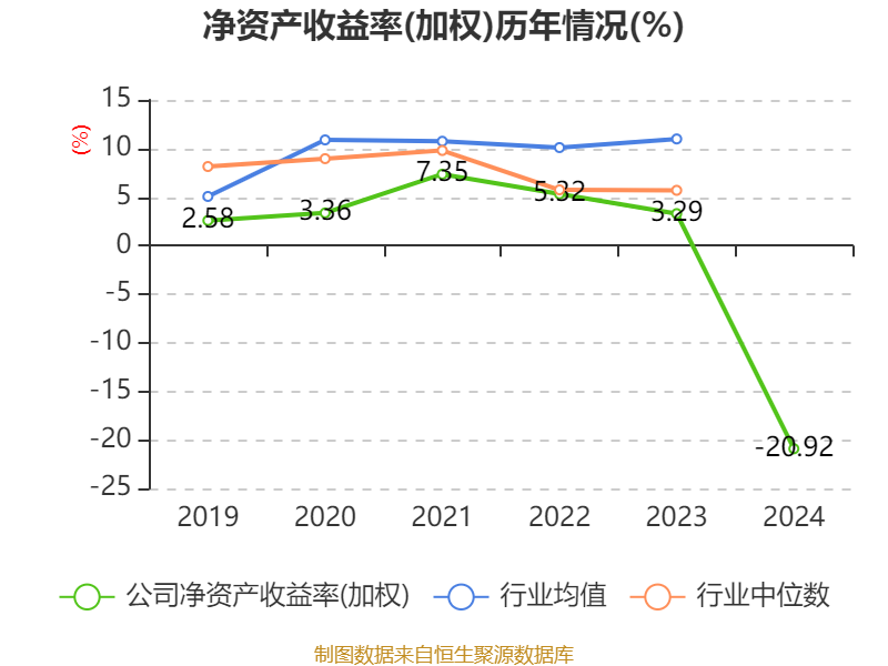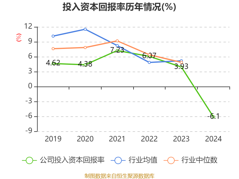数据显示,2024年公司加权平均净资产收益率为-20.92%,较上年同期下降24.21个百分点。公司2024年投入资本回报率为-6.1%,较上年同期下降10.03个百分点。