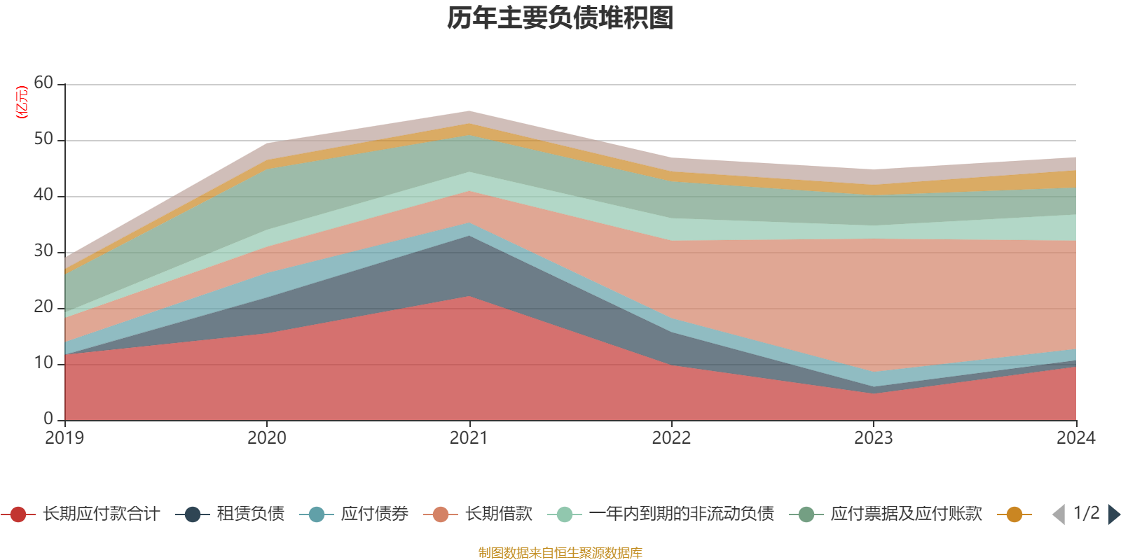 负债重大变化方面,截至2024年末,公司长期应付款合计较上年末增加102.49%,占公司总资产比重上升7.01个百分点;长期借款较上年末减少18.63%,占公司总资产比重下降4.9个百分点;一年内到期的非流动负债较上年末增加98.48%,占公司总资产比重上升3.36个百分点;短期借款较上年末增加65.79%,占公司总资产比重上升1.82个百分点。