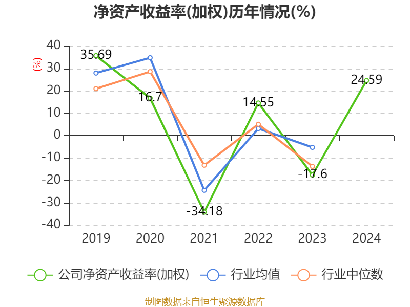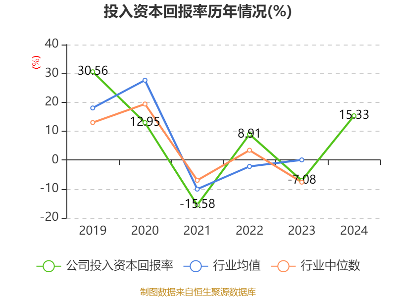 数据显示,2024年公司加权平均净资产收益率为24.59%,较上年同期上升42.19个百分点。公司2024年投入资本回报率为15.33%,较上年同期上升22.41个百分点。