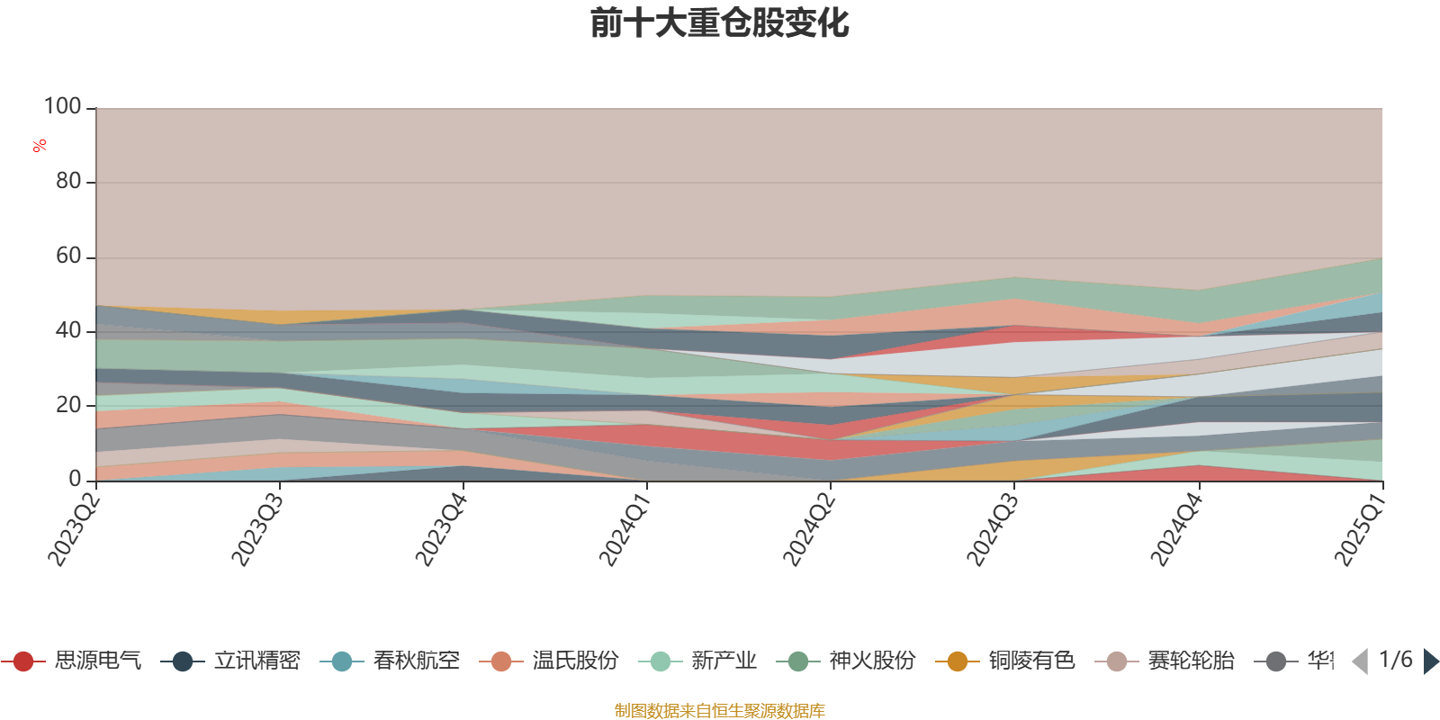 截至2025年一季度末,基金十大重仓股分别是银都股份、徐工机械、比亚迪、神火股份、电连技术、紫金矿业、新产业、美的集团、海大集团、天山铝业。