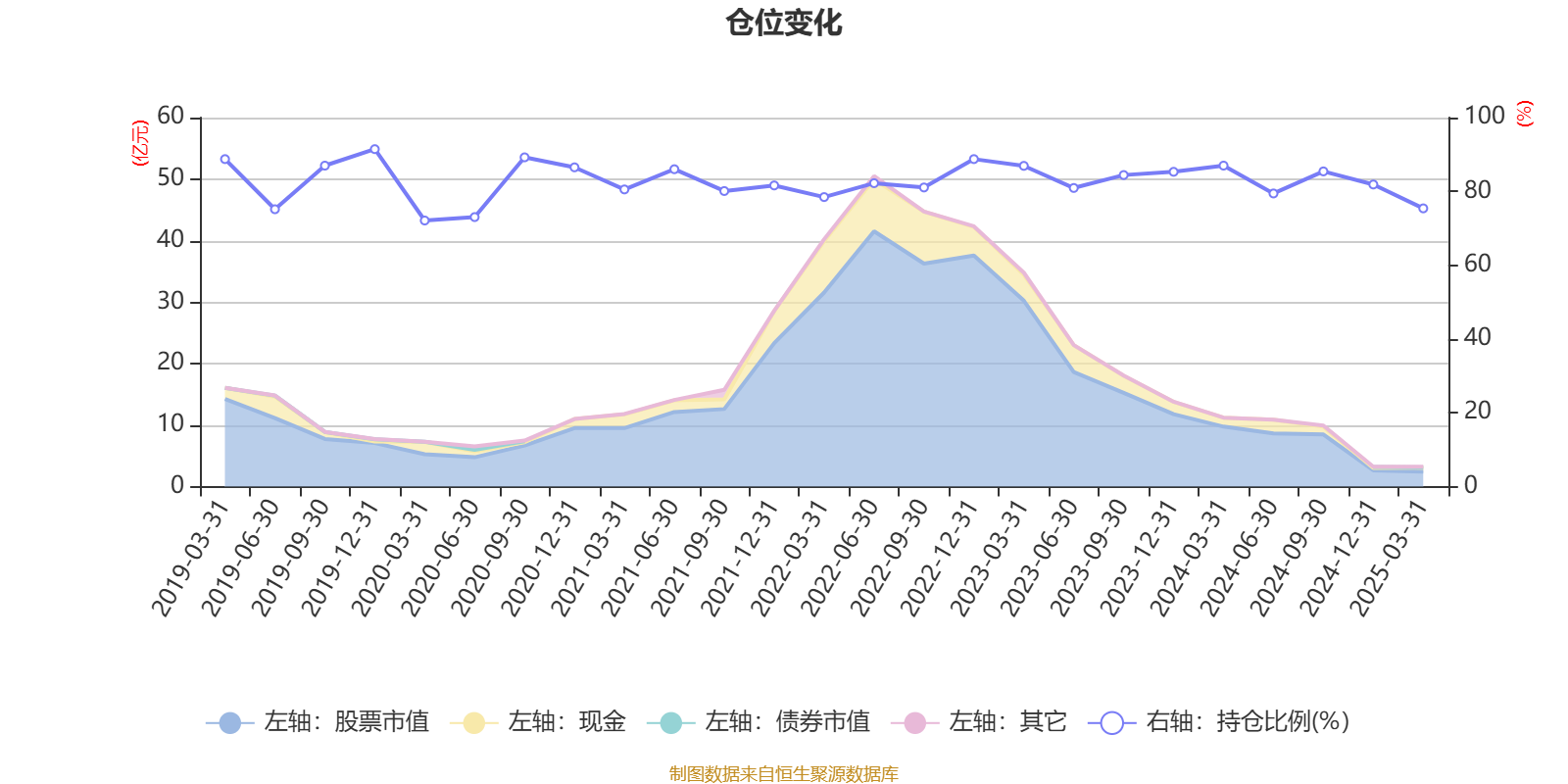 据定期报告数据统计,近三年平均股票仓位为83.23%,同类平均为87.36%。2019年末基金达到91.45%的最高仓位,2020年一季度末最低,为72.11%。