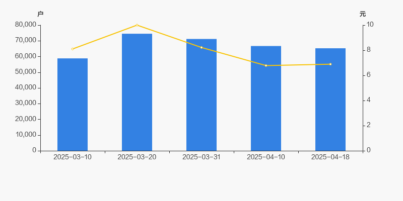 截至2025年4月18日,公司最新总股本为5.88亿股,其中流通股本为4.87亿股。户均持有流通股数量由上期的7300股上升至7461股,户均流通市值5.14万元。