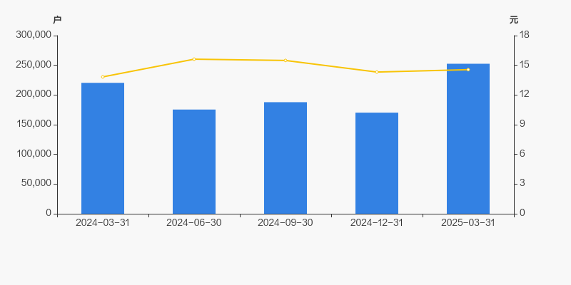 2024年3月31日至今,公司股东户数显著增长,区间涨幅为14.58%。2024年3月31日至2025年3月31日区间股价上涨5.32%。