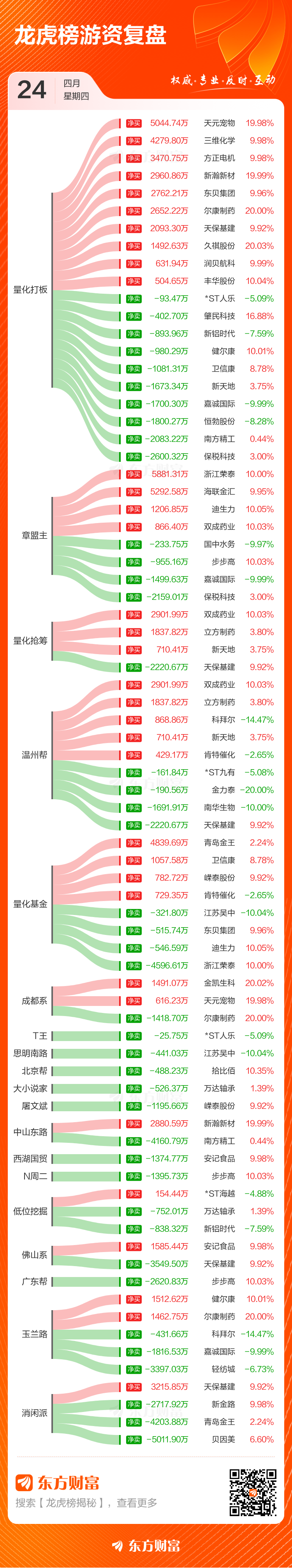 4月24日共有67只个股上榜龙虎榜,总上榜成交额101.30亿元。上榜个股中净买入额最高的是海联金汇,金额为2.01亿元。