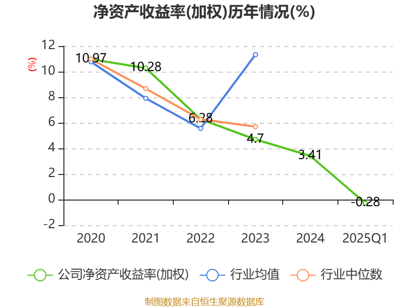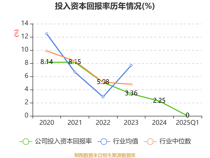 盈利能力方面, 2025年一季度公司加权平均净资产收益率为-0.28%,同比上升0.23个百分点。公司2025年第一季度投入资本回报率为0%,较上年同期上升0.18个百分点。