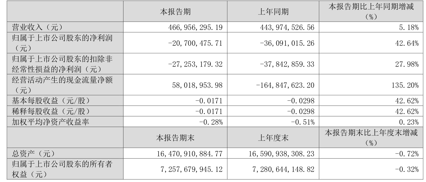中证智能财讯力合科创(002243)4月25日披露2025年第一季度报告。公司实现营业总收入4.67亿元,同比增长5.18%;归母净利润亏损2070.05万元,上年同期亏损3609.1万元;扣非净利润亏损2725.32万元,上年同期亏损3784.29万元;经营活动产生的现金流量净额为5801.9万元,上年同期为-1.65亿元;报告期内,力合科创基本每股收益为-0.0171元,加权平均净资产收益率为-0.28%。