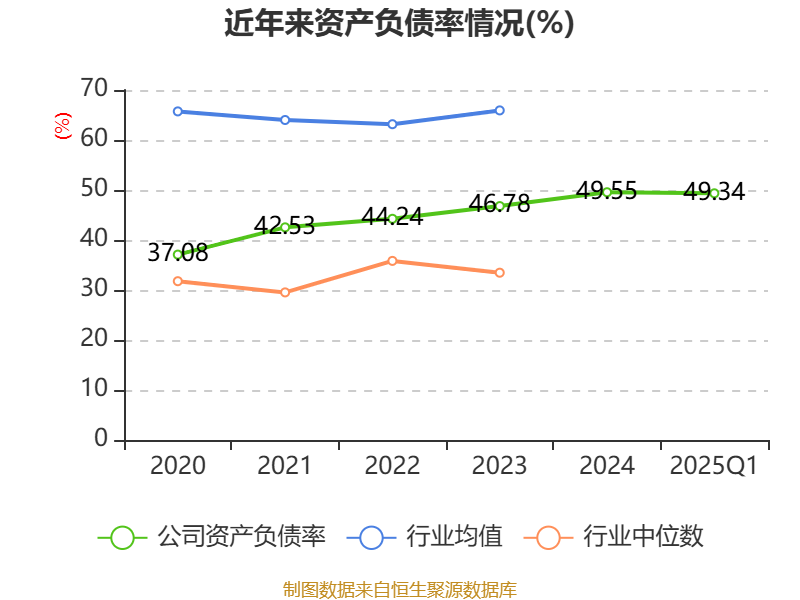 负债重大变化方面,截至2025年一季度末,公司长期借款较上年末增加5.21%,占公司总资产比重上升1.2个百分点;一年内到期的非流动负债较上年末减少40.54%,占公司总资产比重下降0.64个百分点;应付票据及应付账款较上年末减少10.36%,占公司总资产比重下降0.62个百分点;其他应付款(含利息和股利)较上年末增加12.54%,占公司总资产比重上升0.3个百分点。