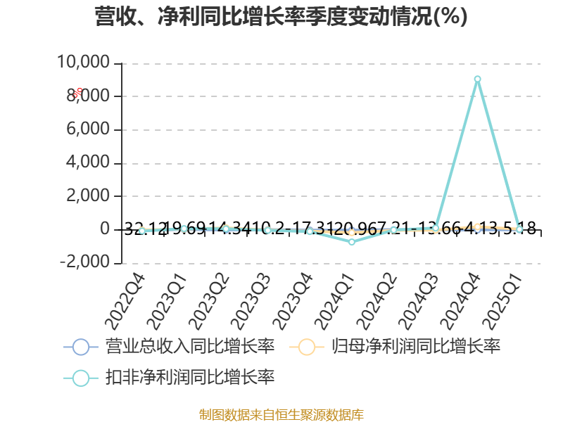 资产重大变化方面,截至2025年一季度末,公司交易性金融资产合计较上年末增加105.56%,占公司总资产比重上升1.58个百分点;货币资金较上年末减少12.5%,占公司总资产比重下降1.33个百分点;存货较上年末增加0.65%,占公司总资产比重上升0.38个百分点;应收票据及应收账款较上年末减少6.59%,占公司总资产比重下降0.34个百分点。