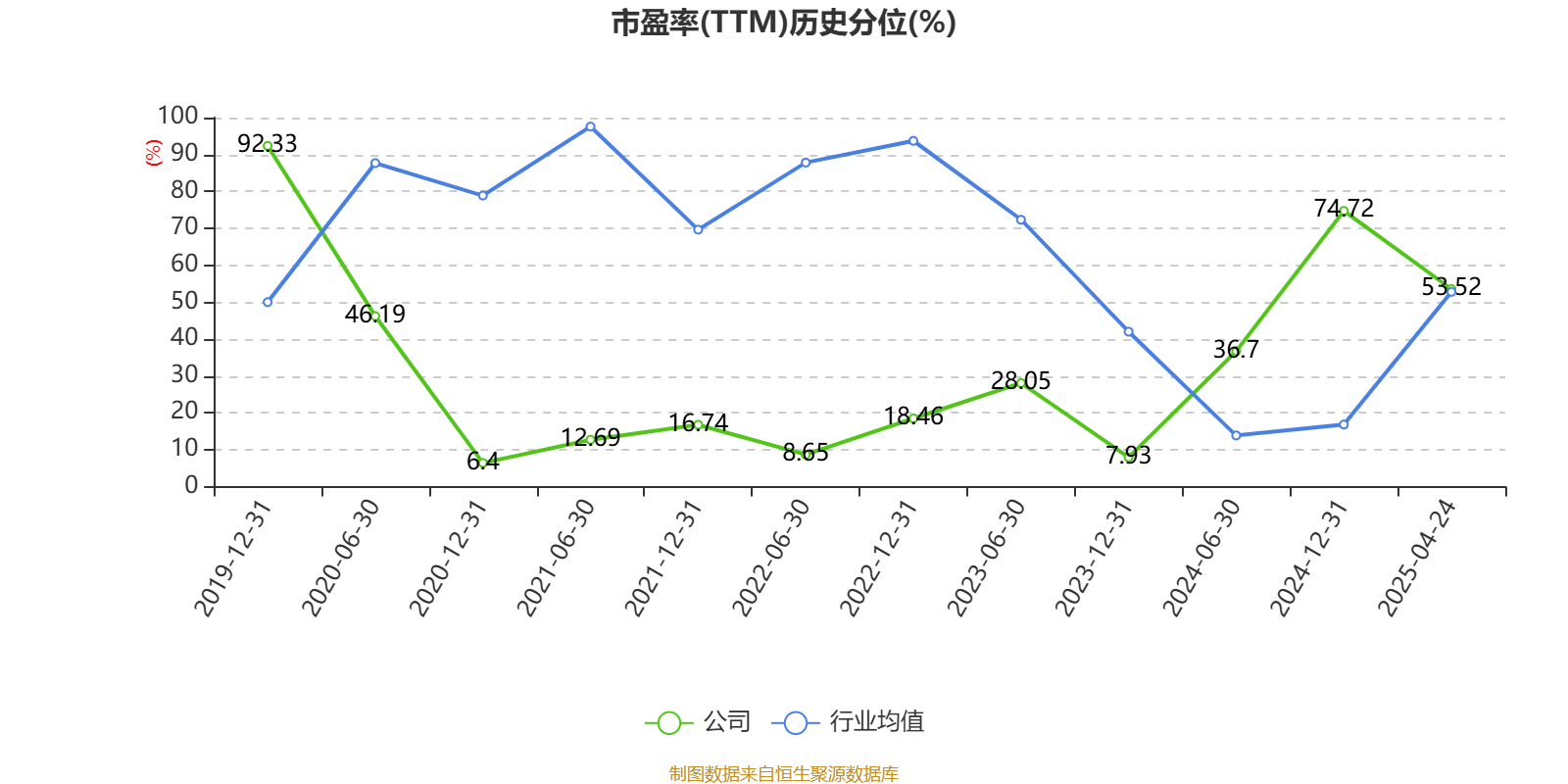 市盈率、市净率为负时,不显示当期分位数,会导致折线图中断。
