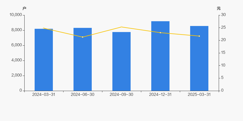 2024年3月31日至今,公司股东户数有所增长,区间涨幅为4.54%。2024年3月31日至2025年3月31日区间股价下降12.62%。