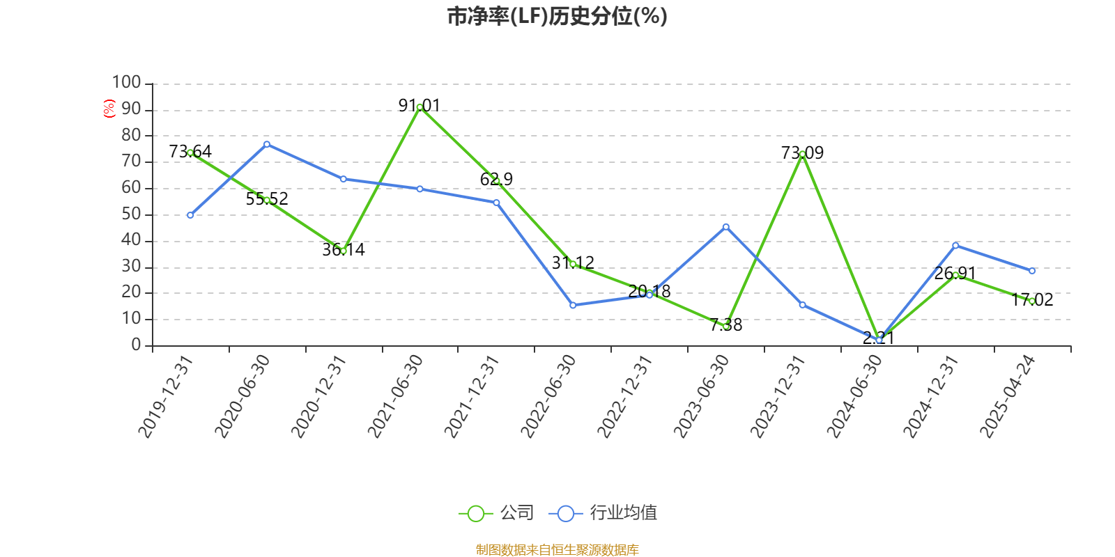 市盈率、市净率为负时,不显示当期分位数,会导致折线图中断。