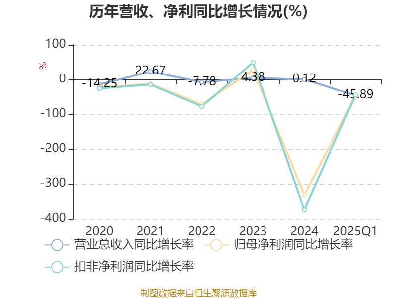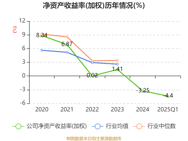 盈利能力方面, 2025年一季度公司加权平均净资产收益率为-4.4%,同比下降1.57个百分点。公司2025年第一季度投入资本回报率为-2.58%,较上年同期下降0.79个百分点。