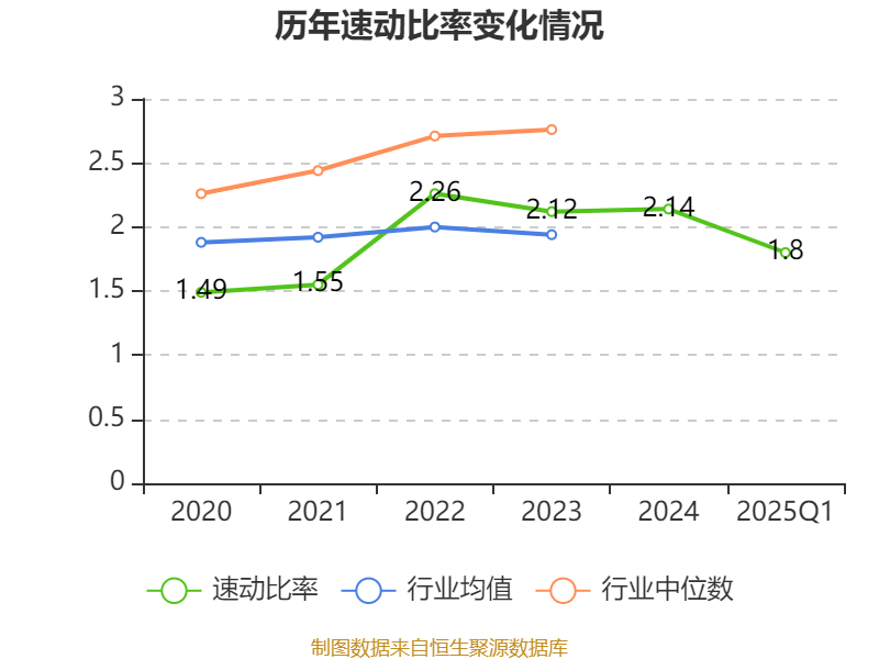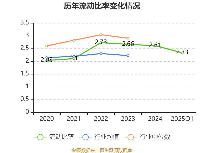 2025年第一季度,公司流动比率为2.33,速动比率为1.8。