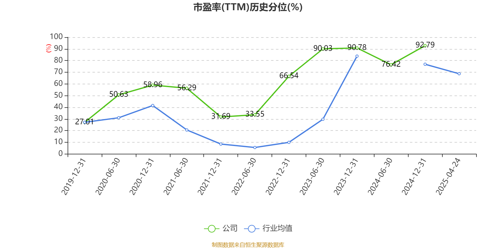 市盈率、市净率为负时,不显示当期分位数,会导致折线图中断。