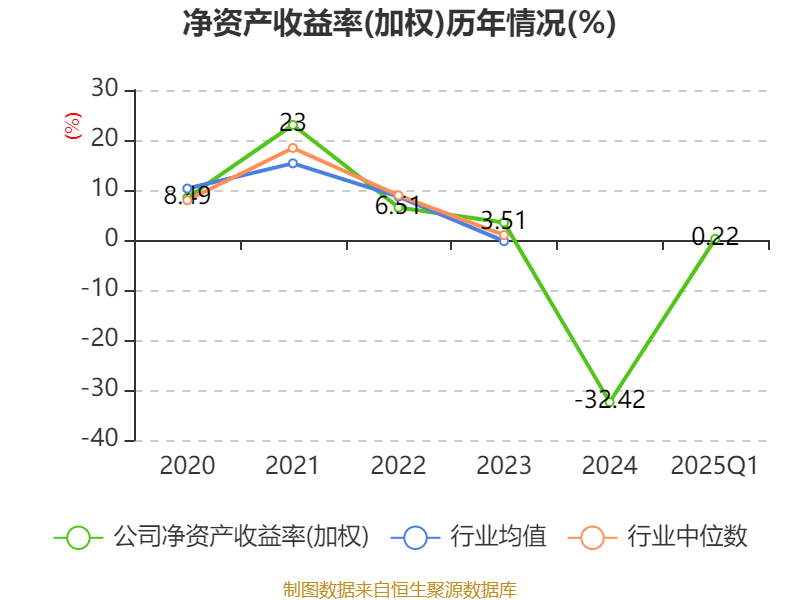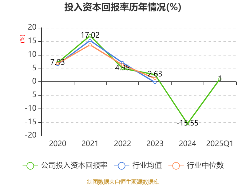 盈利能力方面, 2025年一季度公司加权平均净资产收益率为0.22%,同比下降1.17个百分点。公司2025年第一季度投入资本回报率为1%,较上年同期下降0.41个百分点。