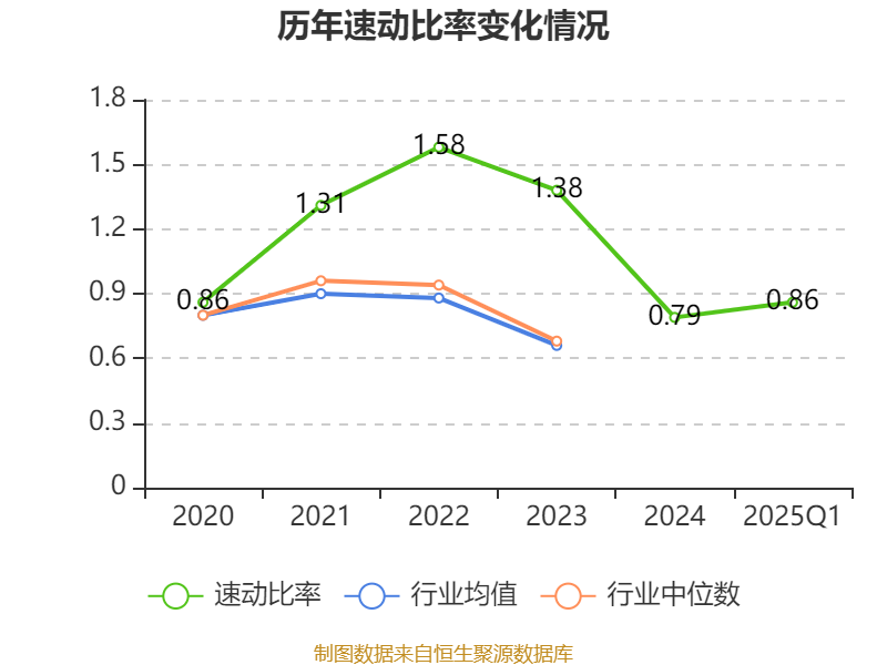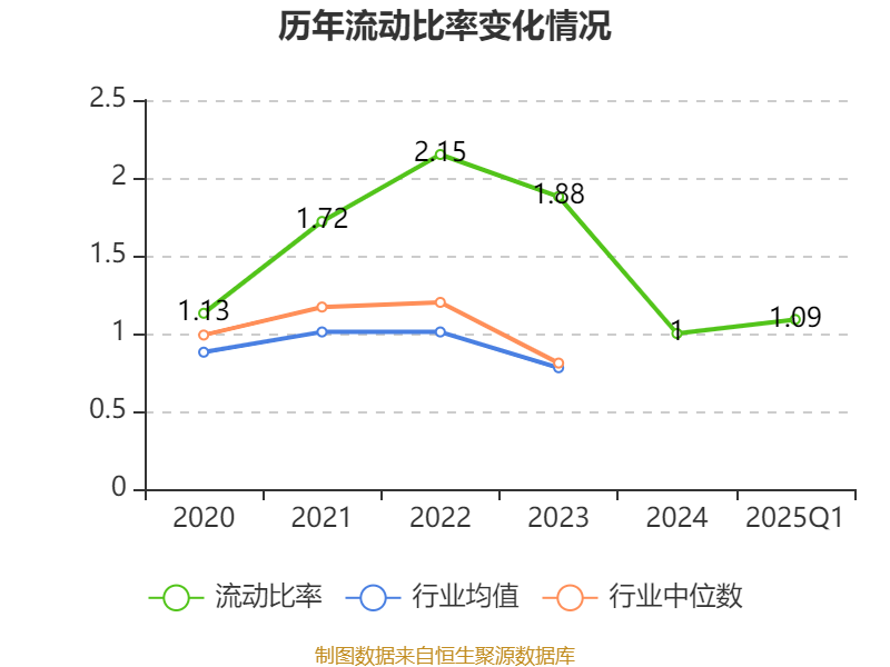 2025年第一季度,公司流动比率为1.09,速动比率为0.86。