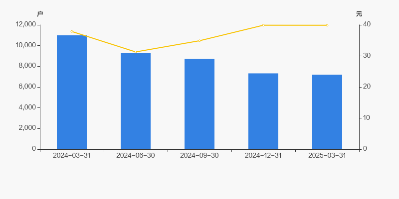 截至2025年3月31日,公司最新总股本为7956.96万股,其中流通股本为7435.93万股。户均持有流通股数量由上期的9928股上升至1.03万股,户均流通市值41.22万元。