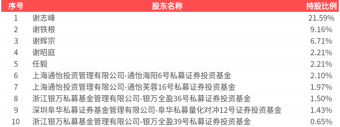 公司股东户数为3.10万户,前十大股东持股数量为4.23亿股,占总股本比例为49.53%,前十大股东持股情况如下:
