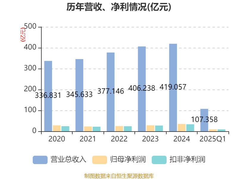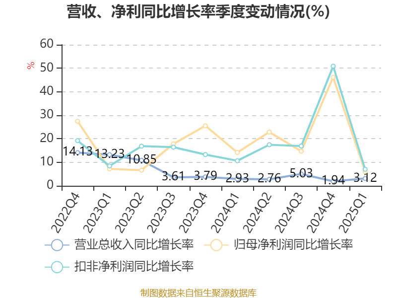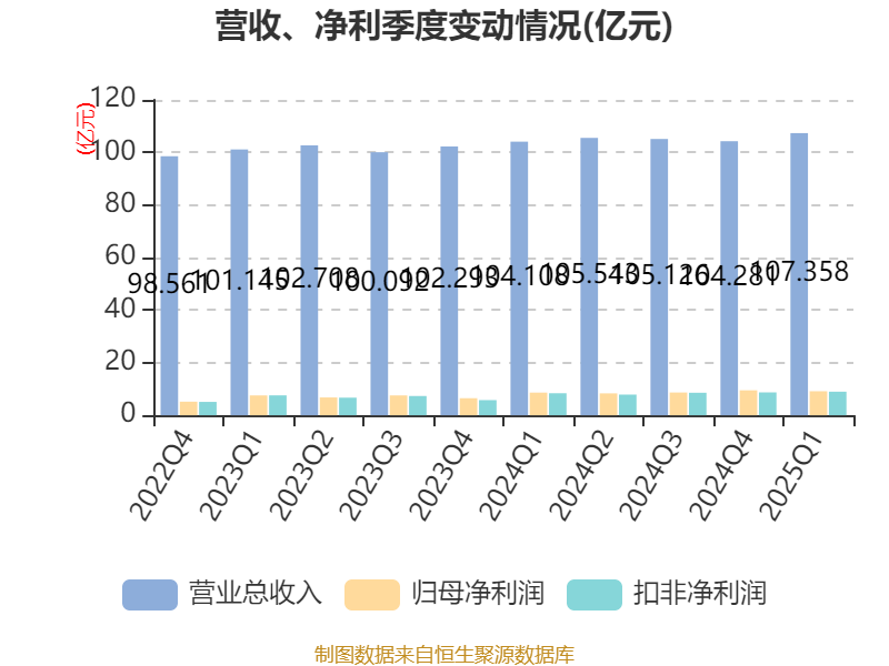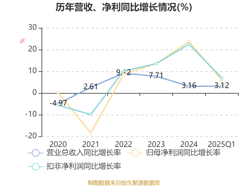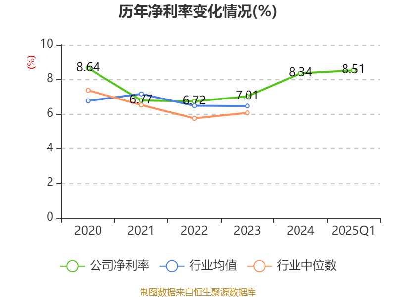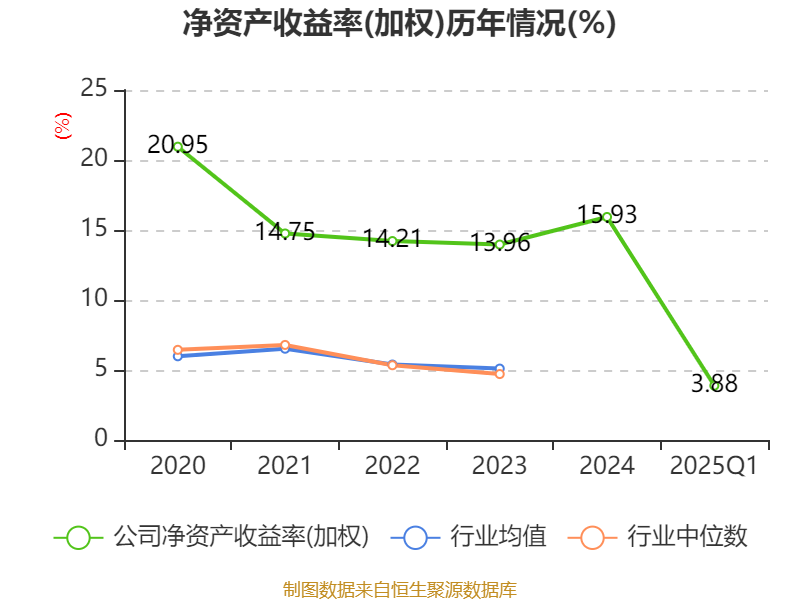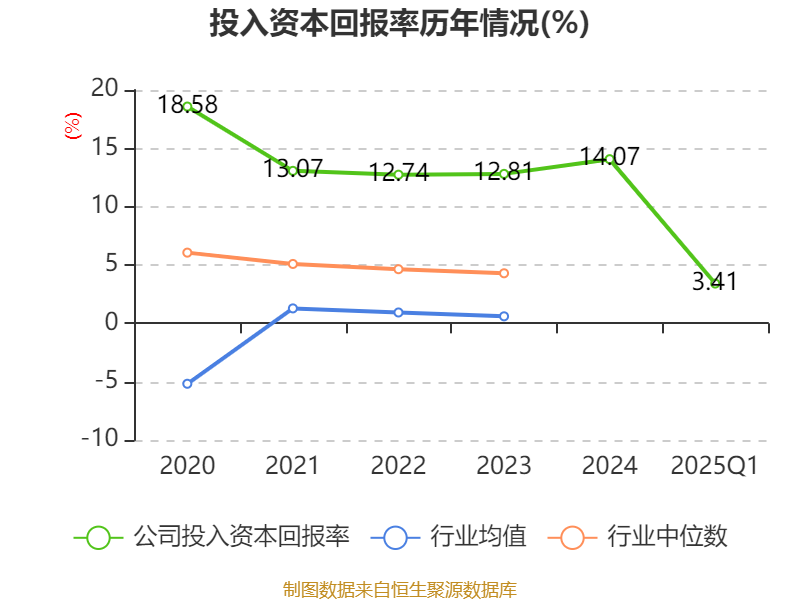 盈利能力方面, 2025年一季度公司加权平均净资产收益率为3.88%,同比下降0.13个百分点。公司2025年第一季度投入资本回报率为3.41%,较上年同期下降0.19个百分点。