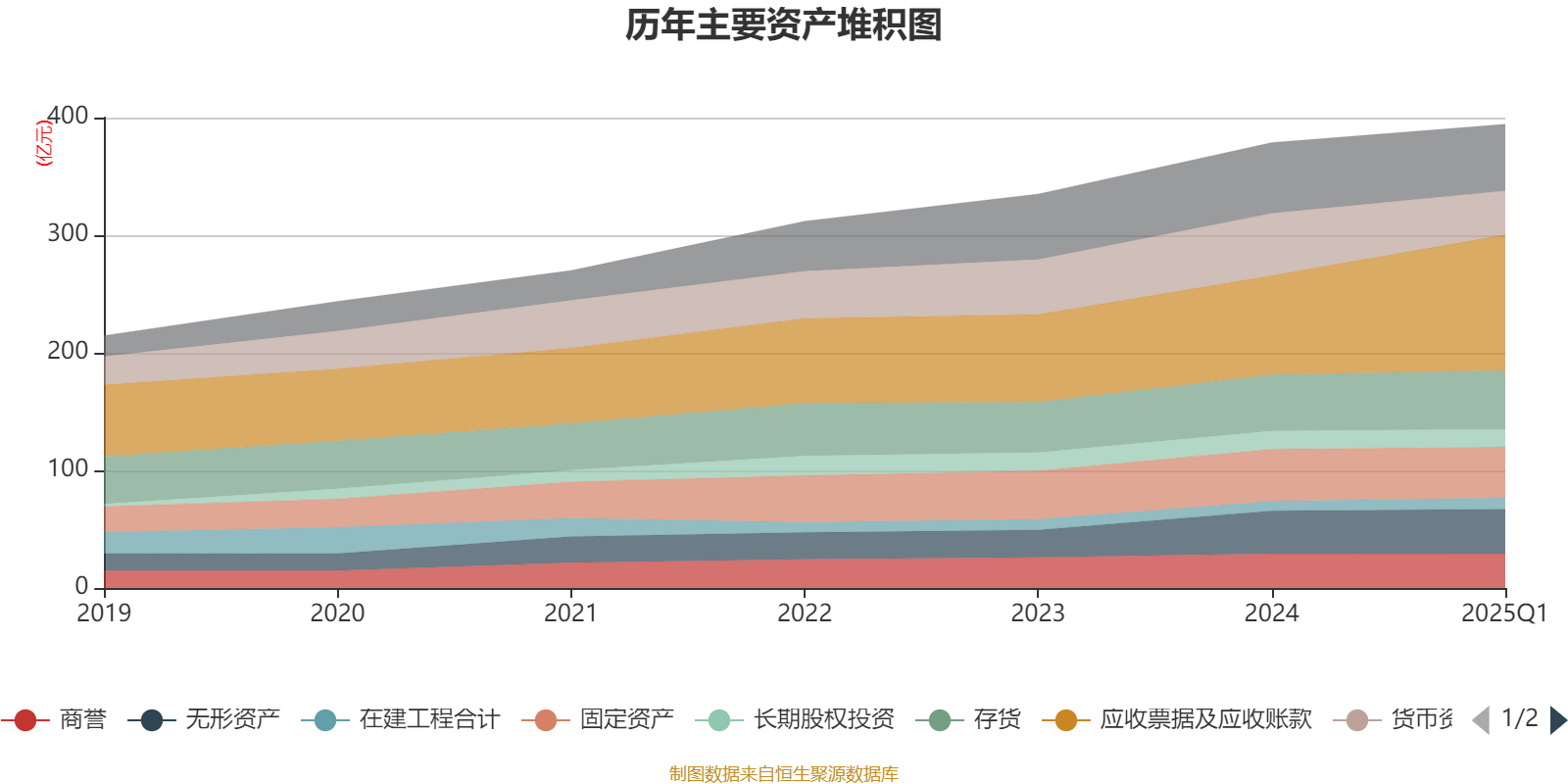 资产重大变化方面,截至2025年一季度末,公司应收票据及应收账款较上年末增加37.01%,占公司总资产比重上升7.03个百分点;货币资金较上年末减少29.65%,占公司总资产比重下降4.52个百分点;应收款项融资较上年末减少41.1%,占公司总资产比重下降1.92个百分点;固定资产较上年末减少2.02%,占公司总资产比重下降0.69个百分点。