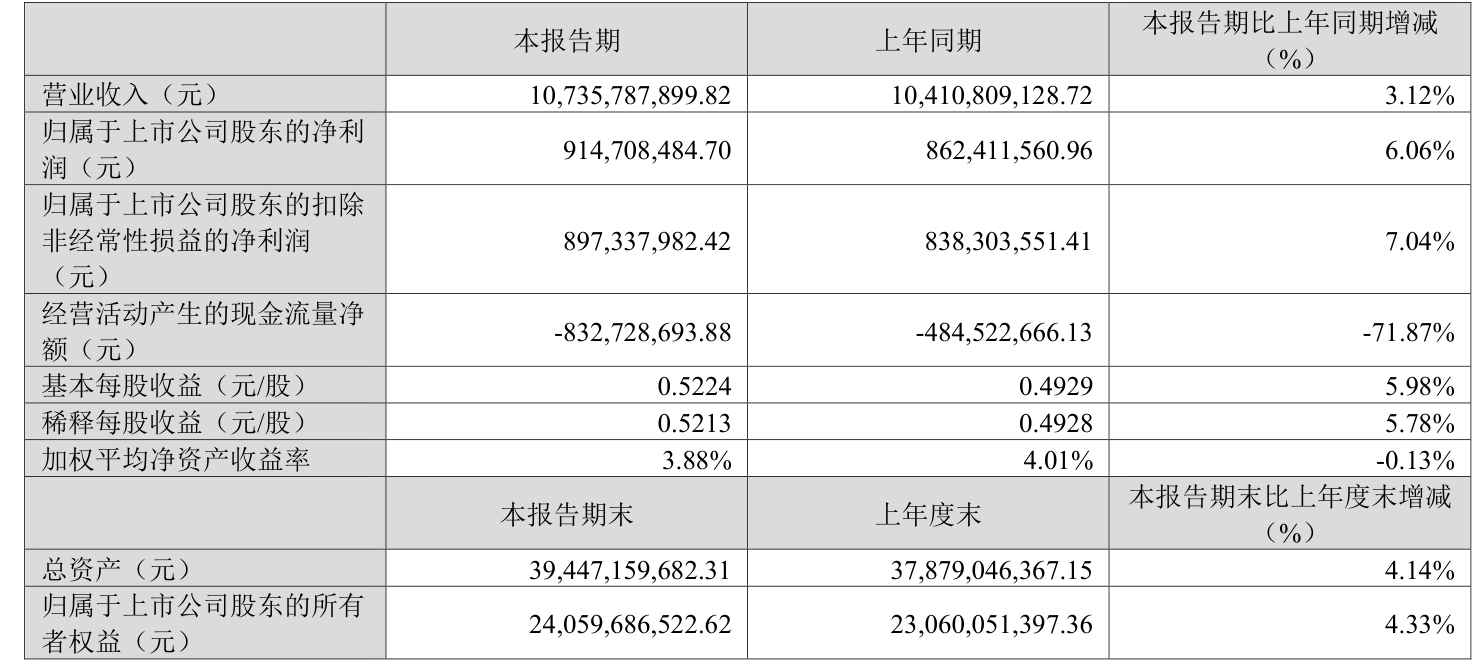 中证智能财讯华东医药(000963)4月25日披露2025年第一季度报告。公司实现营业总收入107.36亿元,同比增长3.12%;归母净利润9.15亿元,同比增长6.06%;扣非净利润8.97亿元,同比增长7.04%;经营活动产生的现金流量净额为-8.33亿元,上年同期为-4.85亿元;报告期内,华东医药基本每股收益为0.5224元,加权平均净资产收益率为3.88%。