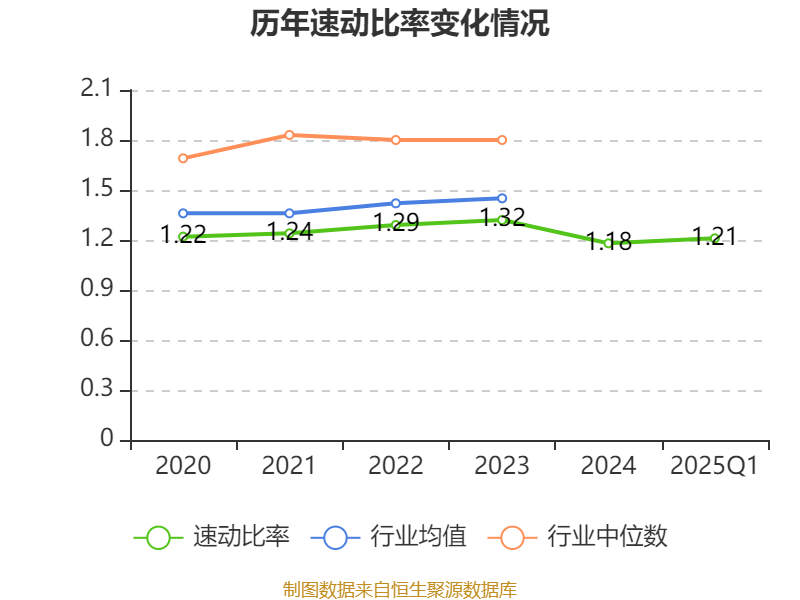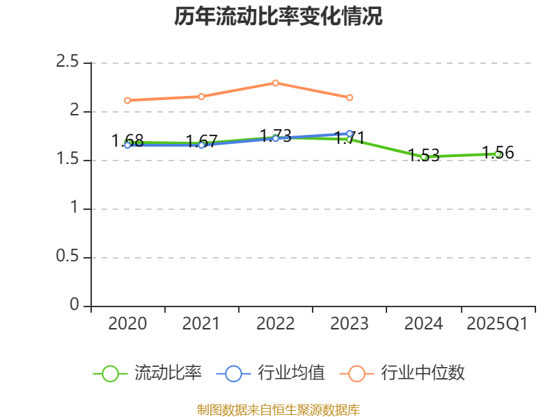 2025年第一季度,公司流动比率为1.56,速动比率为1.21。