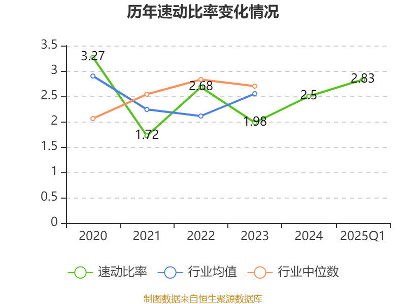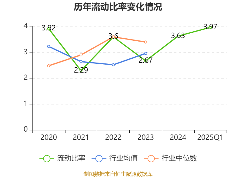 2025年第一季度,公司流动比率为3.97,速动比率为2.83。