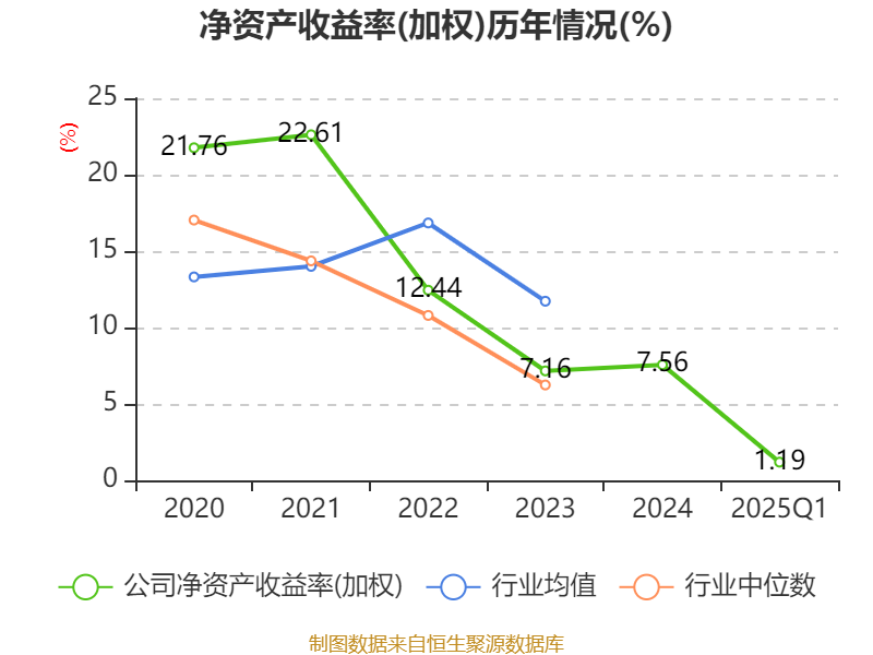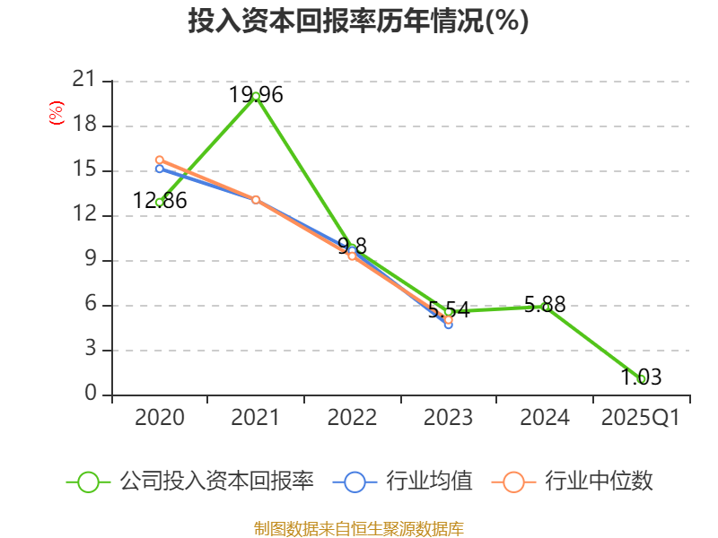 盈利能力方面, 2025年一季度公司加权平均净资产收益率为1.19%,同比下降0.54个百分点。公司2025年第一季度投入资本回报率为1.03%,较上年同期下降0.29个百分点。