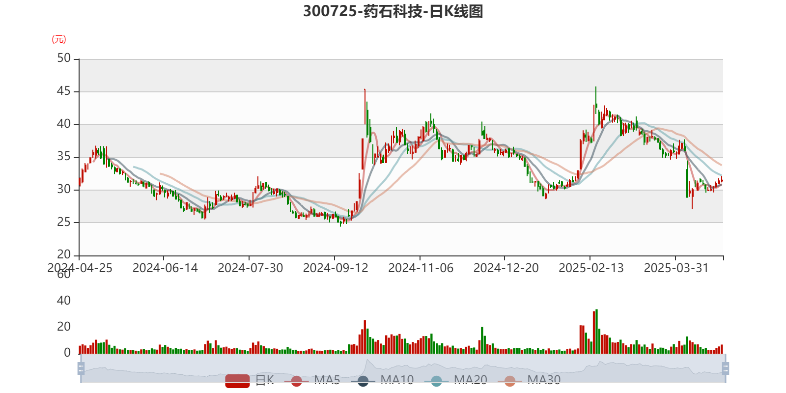 以4月24日收盘价计算,药石科技目前市盈率(TTM)约为30.56倍,市净率(LF)约2.08倍,市销率(TTM)约3.56倍。