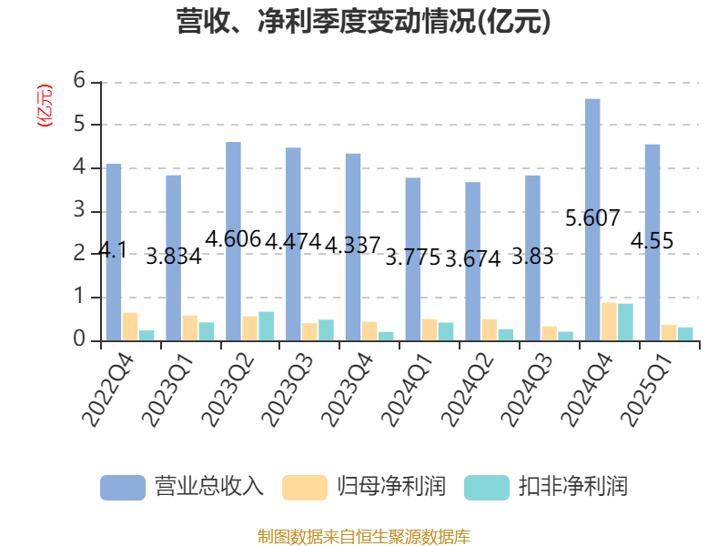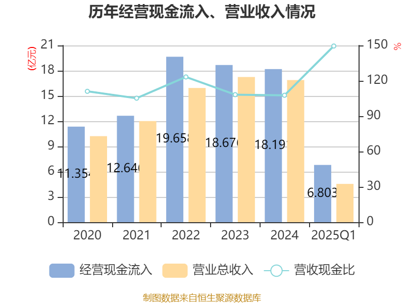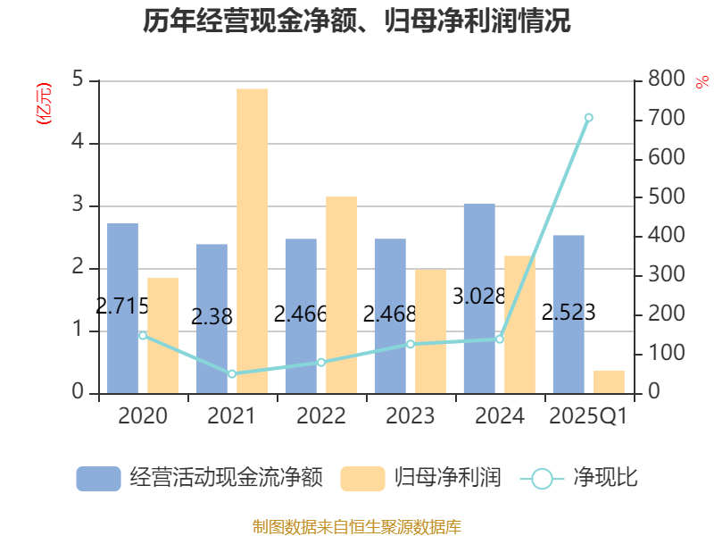 截至2025年一季度末,公司经营活动现金流净额为2.52亿元,同比增长356.06%;筹资活动现金流净额-4654.65万元,同比增加1.5亿元;投资活动现金流净额1.5亿元,上年同期为6893万元。