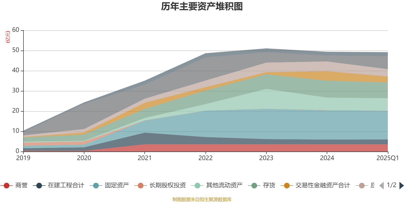 资产重大变化方面,截至2025年一季度末,公司货币资金较上年末增加122.43%,占公司总资产比重上升7.25个百分点;交易性金融资产合计较上年末减少36.54%,占公司总资产比重下降3.42个百分点;应收票据及应收账款较上年末减少24.72%,占公司总资产比重下降2.38个百分点;存货较上年末减少7.05%,占公司总资产比重下降1.14个百分点。